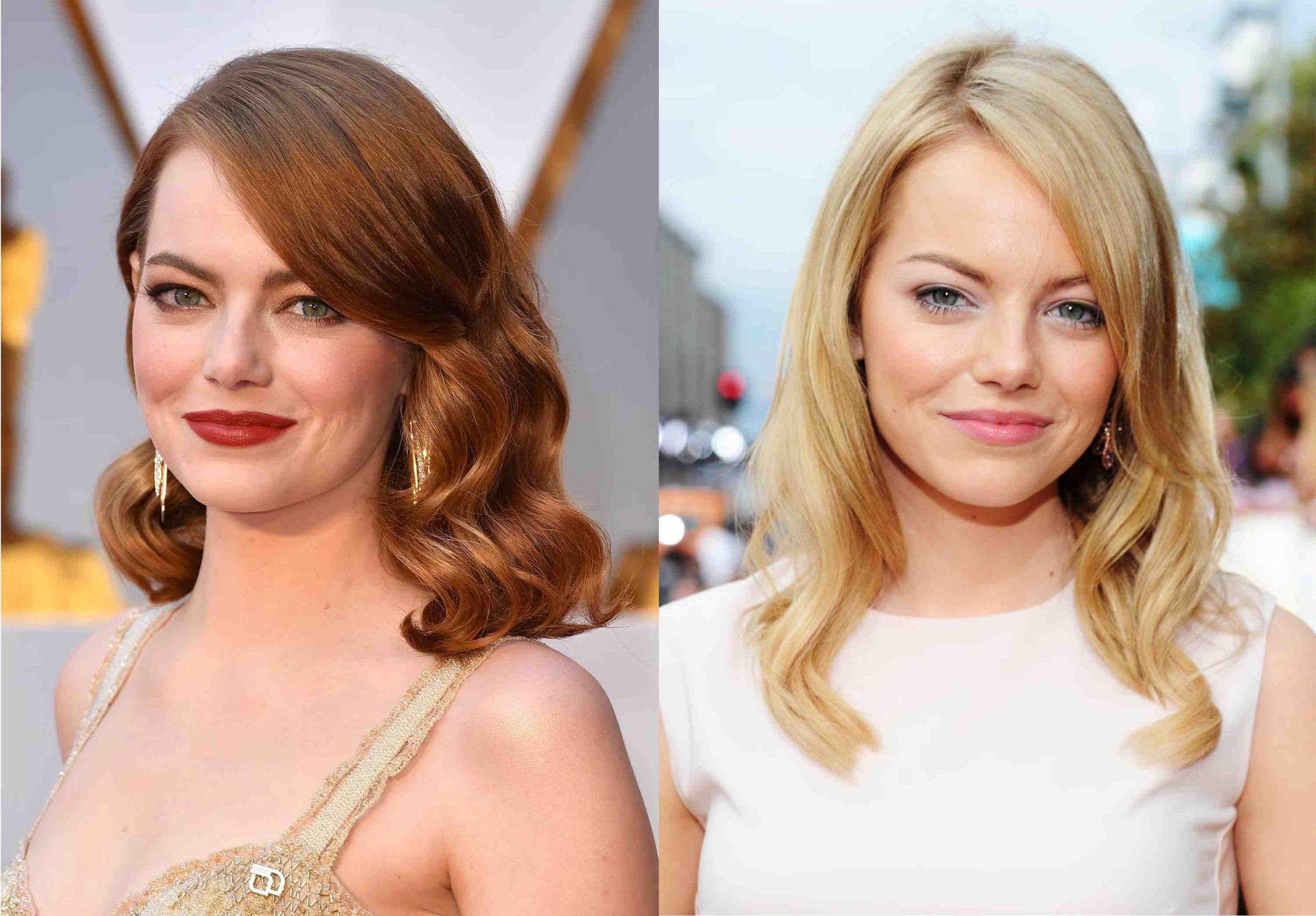 相信不少人认为艾玛史东的真实髮色是红色,但事实上,这位知名的美国影星可是位货真价实的金髮美女(右)。最初建议她将髮色染红的,是电影《男孩我最坏》的製作人Judd Apatow;当时艾玛披着一头深棕髮去试镜,但Judd却觉得红髮较适合她及角色,从此之后,红髮便成了她的招牌特色之一,星运也似乎越来越好。而她本人亦曾表示,虽然本身是金髮,但却相当喜爱如此带红的髮色。