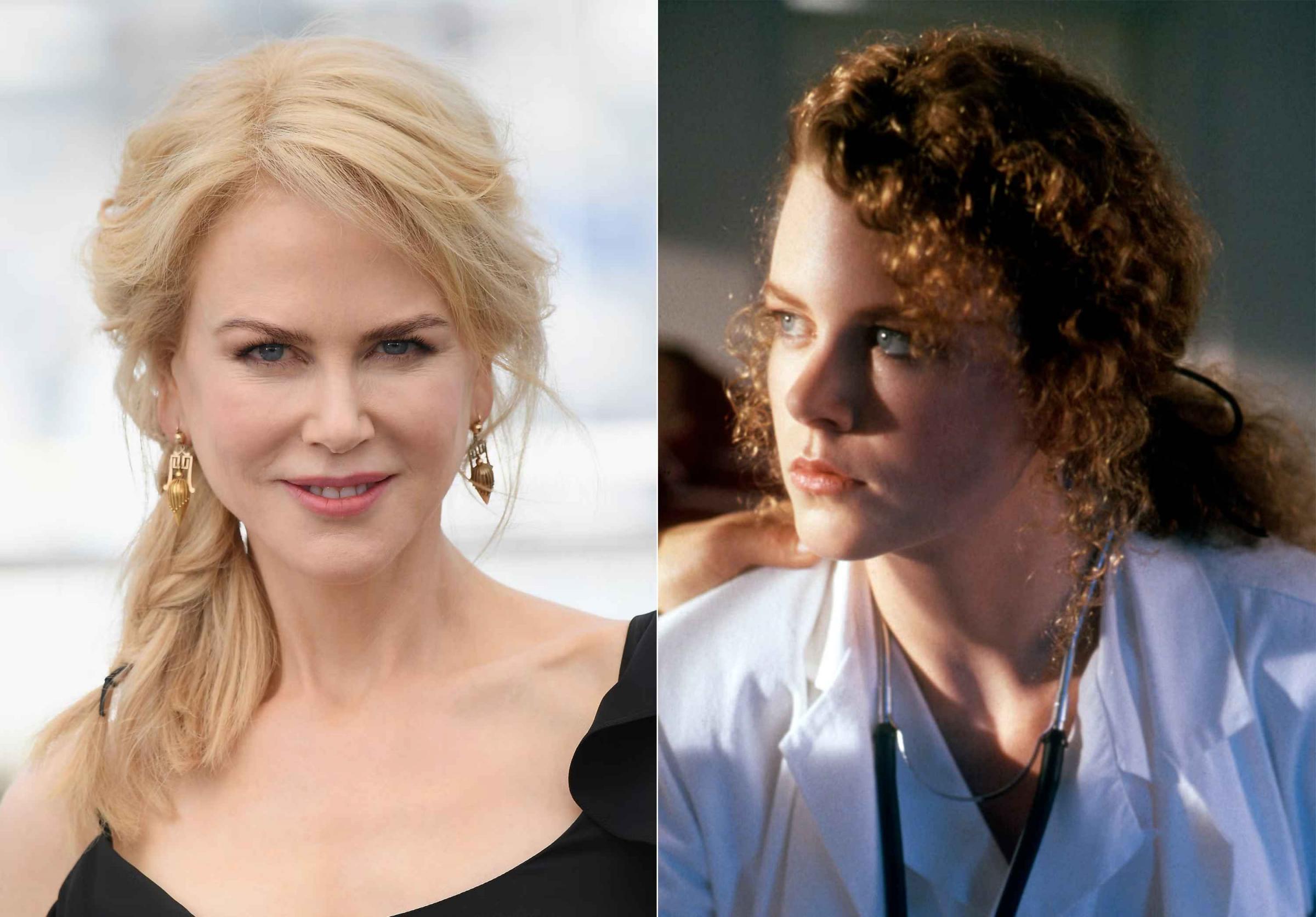多年来常以白金髮衬托她雪白的肤色,让人几乎忘记红棕色的细卷蓬髮(右),才是妮可基嫚原始的髮样。