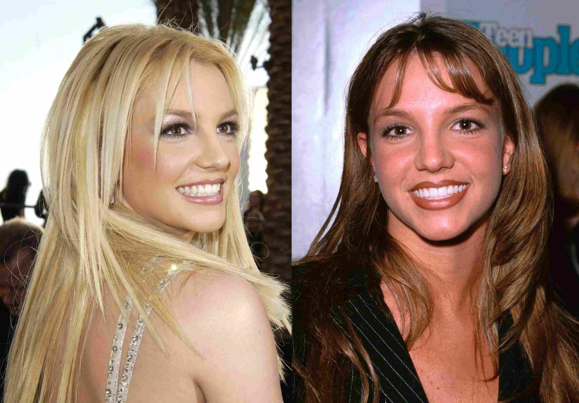 一头浅金的光泽直髮,与于90年代风靡全球的小甜甜布兰妮那「美国甜心」的形象十分相衬,甚至和原始的棕色微卷髮(右)相比,显得更加清爽年轻。